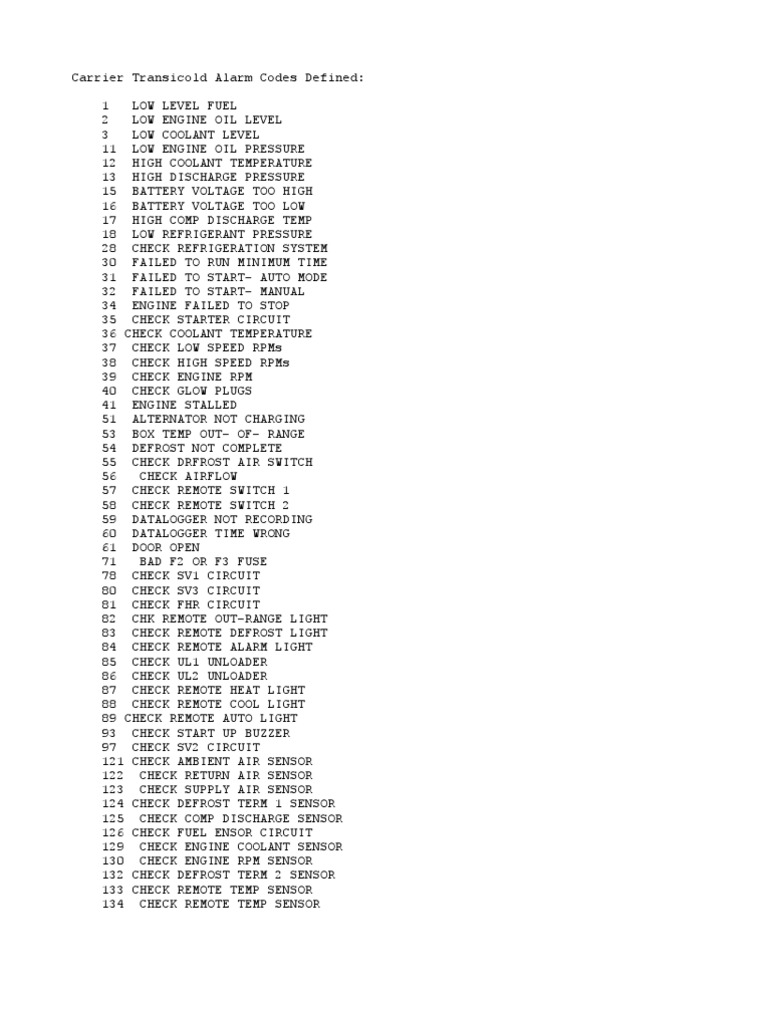 THERMO KING TRUCK & TRAILER UNIT ALARM CODES